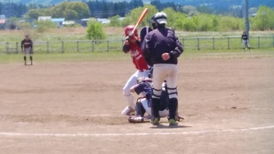 同大野球部とアレッズの練習試合の合間に、「弘前アレッズ」の根深周平主将を取材