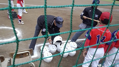 試合前には審判員による道具チェックがありました