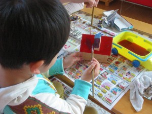 水性絵の具です。倅にポイントを訪ねると・・・、