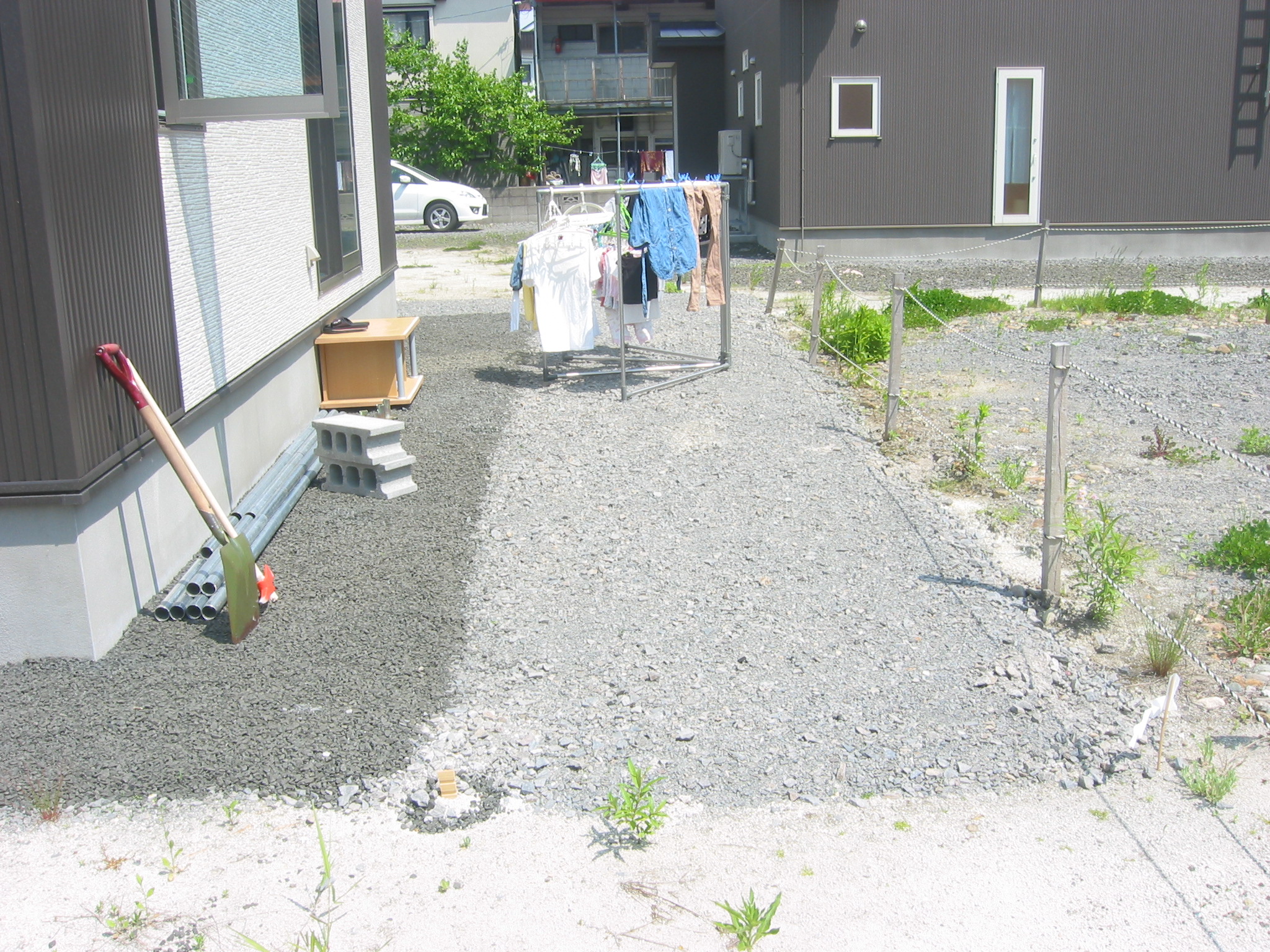 13日の金曜日にお祓いした時の、なんか白い紙が敷地の角に残ってます。