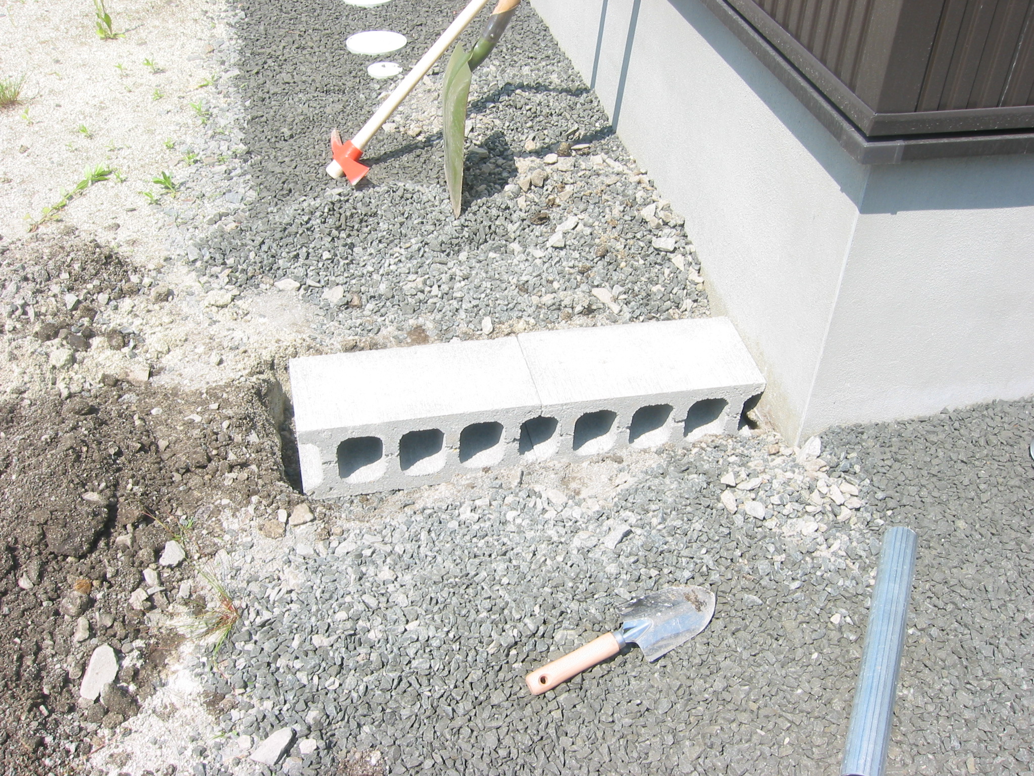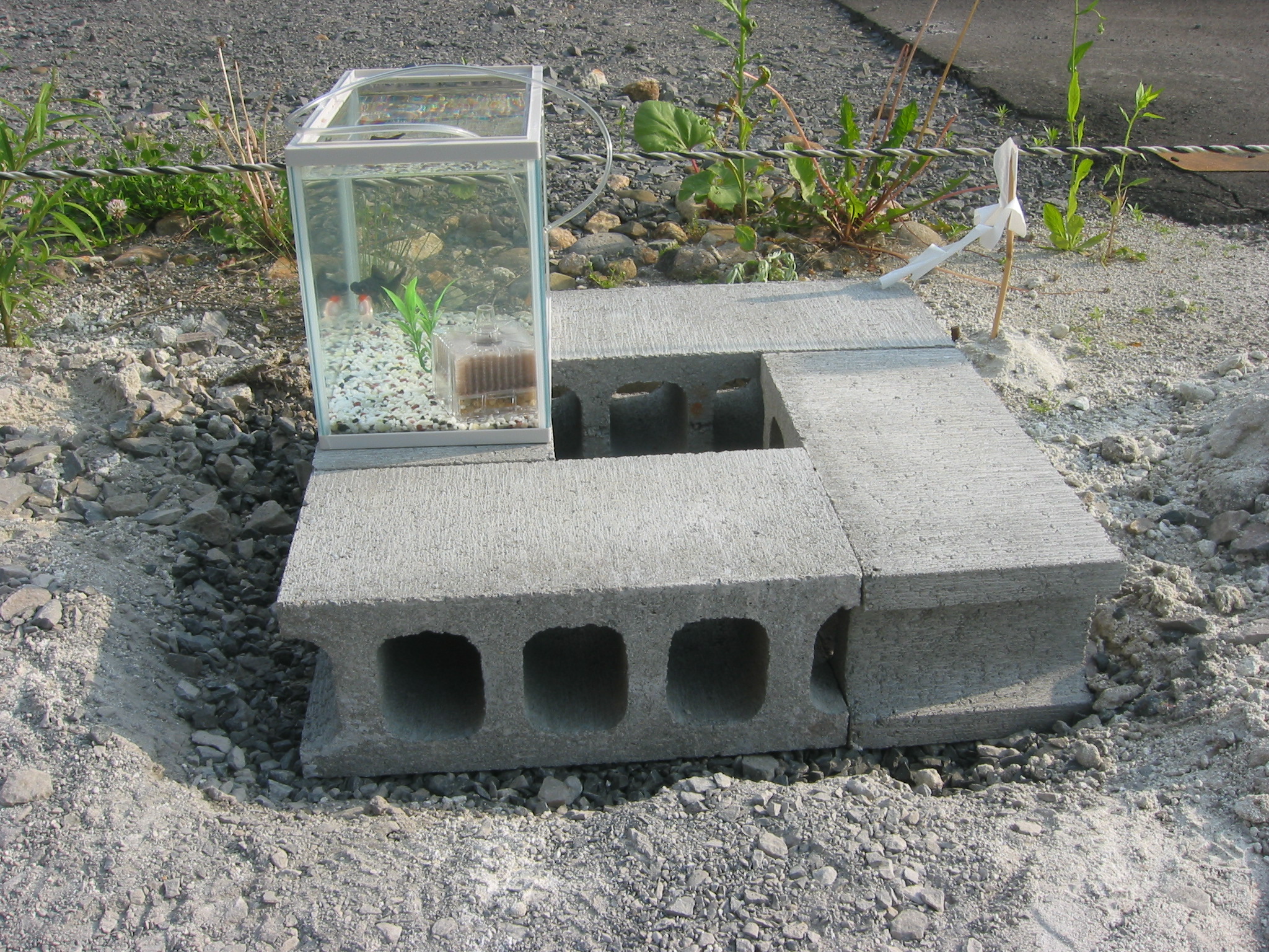 水槽をブロックにのっけています・・・。