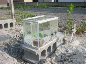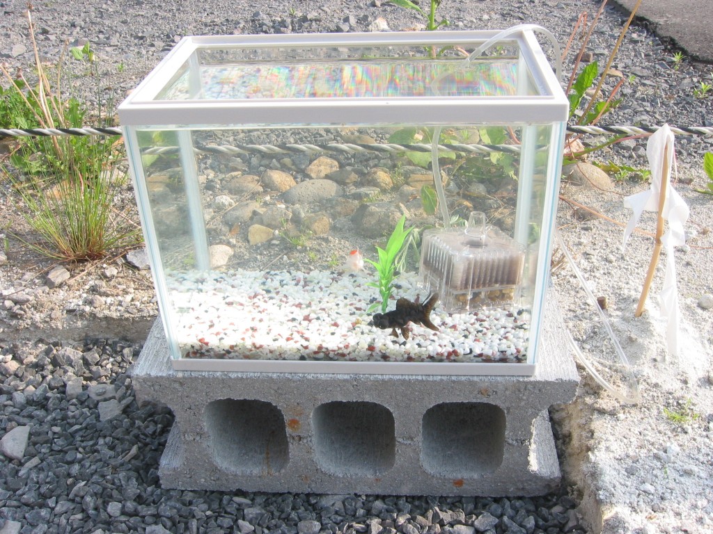 いちいち水が大揺れするので、金魚はいい迷惑だったはず。