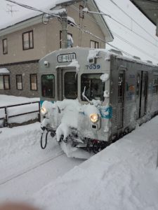 電車は雪まみれ